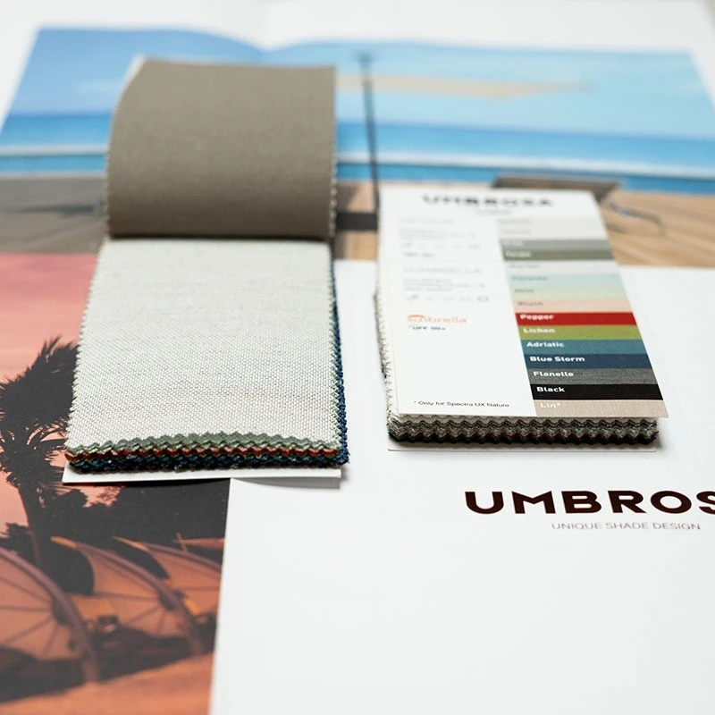 Damit Sie einen originalgetreuen Eindruck von den verwendeten Schirmbespannungen und Gestelle der Umbrosa Kollektion erhalten, senden wir Ihnen gerne die Muster mit der aktuellen Umbrosa Stoff-Kollektion zu. So können Sie sich ganz bequem von Zuhause aus für die passende Farbe entscheiden und sich von der Qualität und Haptik der ausgewählten Schirmbespannung überzeugen.