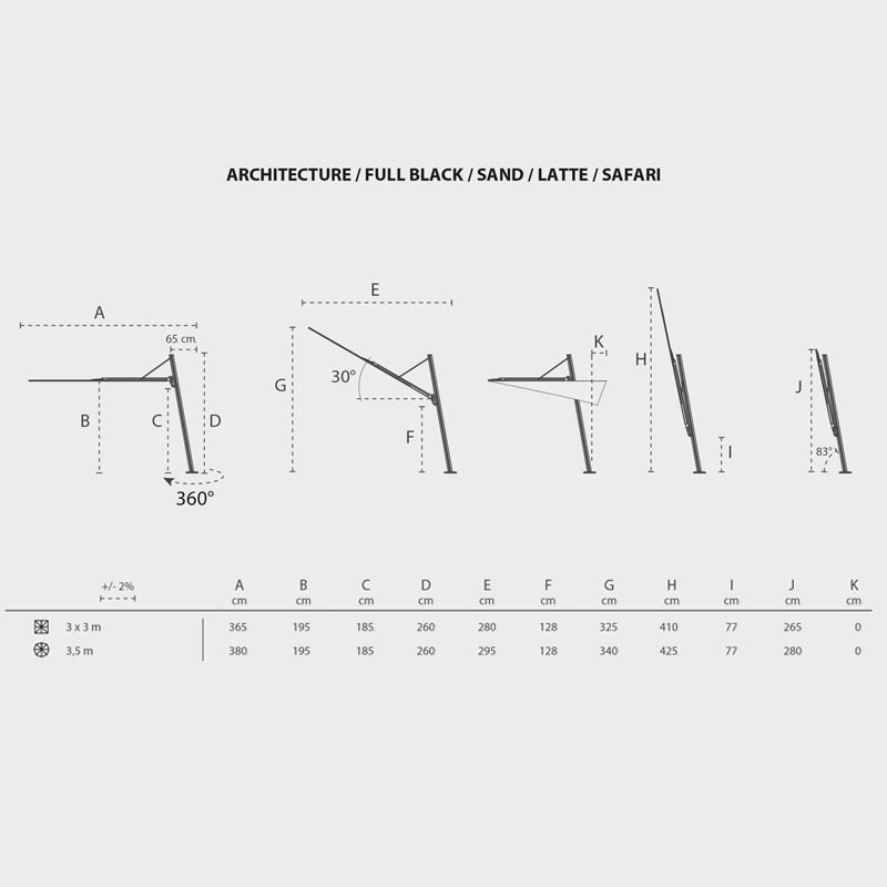 VERSA PX Freiarmschirm 300x300 cm, Black/ Black