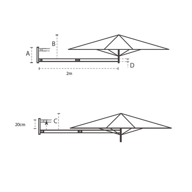 Umbrosa PARAFLEX Wand-Sonnenschirm 200 x 200 cm